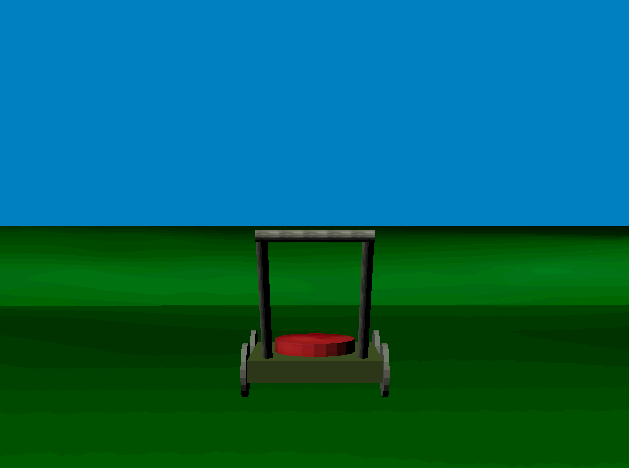 The trees are awesome - not only did I add boundaries so that the lawnmower wouldn't go over the edge of the world, but I also added each of the trees to the "boundary" list so that if the lawnmower runs into them, it gets shunted off to the side. Pretty cool actually. I modified the positionVehicle() function to positionObject so that I could pass the object to be positioned as a parameter and again, code reusability. That one function alone makes everything a lot easier in regards of placement!
